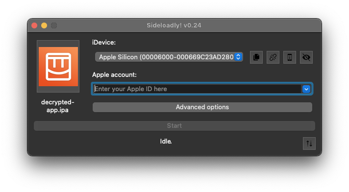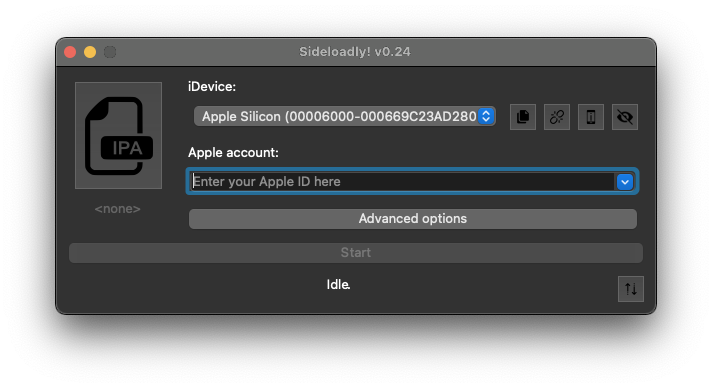 Drag the .ipa file you airdropped from your iPhone onto SideLoady.